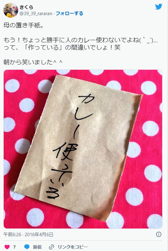 家に帰ったら母からのシュールな置手紙。『なんだこれは?』笑いが止まらない。