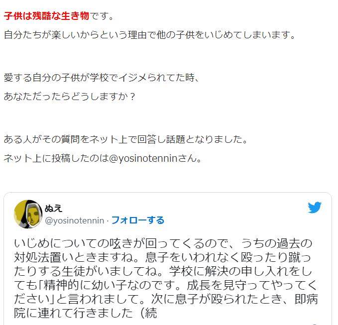 自分の子供がイジメにあっていた…家族に出来るイジメ対処法が話題に