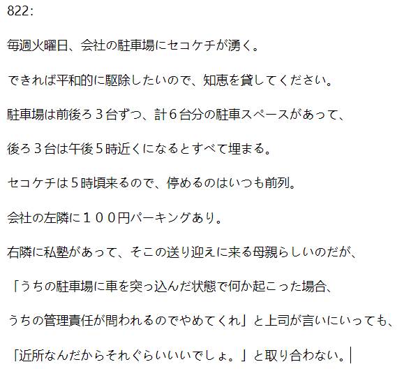 【反撃!】会社の駐車場に、無断駐車するキチママ →上司「管理責任が問われるやめてくれ」キ『前の所長さんはそんな事いわなかたわ』 →どんな手を使っても停めてきて・・・